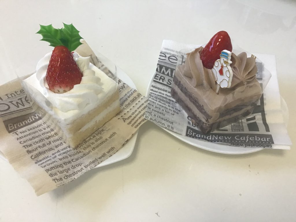 12/20(月)から12/24(金)までクリスマス週間という事で、ご利用者様にケーキのおやつをお持ち帰りしていただきました。生クリームとチョコレートの2種類をご用意し、ご自宅で召し上がっていただきました。ご利用者様からは「2種類もケーキが食べられてよかった。」とお言葉をいただきました。